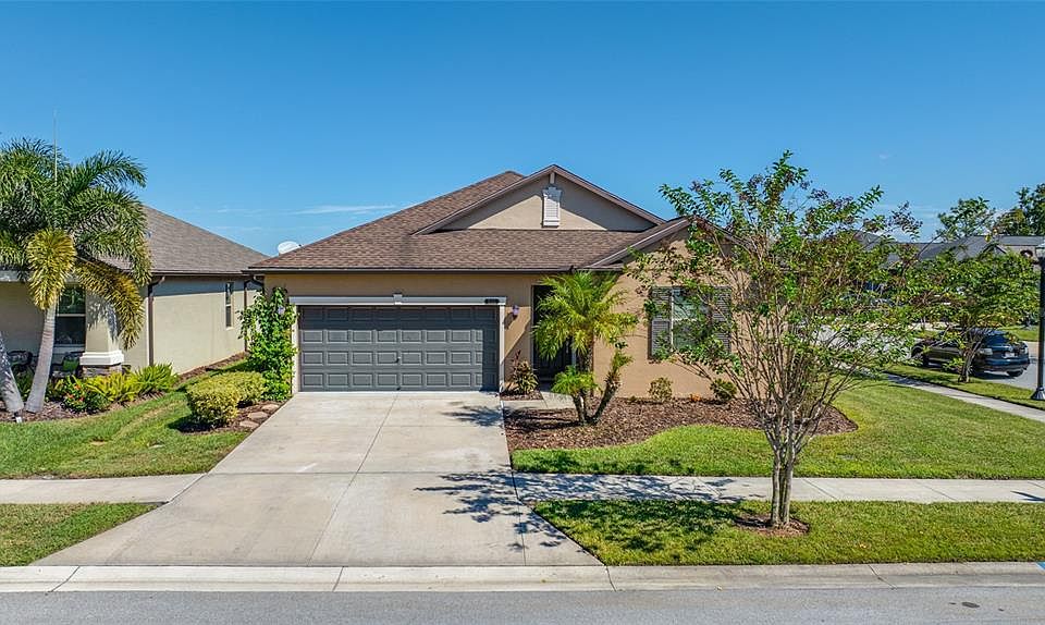 Welcome to your dream home in the heart of Land O' Lakes! This beautifully updated 4-bedroom, 3-bath home sits on a spacious corner lot with lush, low-maintenance landscaping—including mature palms that add a touch of tropical charm. Freshly painted and move-in ready, this home features stylish new barnwood-look flooring in the bedrooms and a thoughtfully designed triple-split floorplan for maximum comfort and privacy. The spacious primary suite overlooks the peaceful backyard and boasts a luxurious 13-ft deep walk-in closet, plus a private en suite bath with dual vanities, a relaxing soaking tub, and a separate walk-in shower. Two generously sized bedrooms are located at the front of the home, with a fourth bedroom just off the kitchen—perfect for guests or a home office. At the heart of the home is the open-concept kitchen and living space, complete with granite countertops, tile flooring, a large pantry, and abundant cabinet space. The combined living and dining area offers plenty of room for entertaining, and ceiling fans are installed in all bedrooms and the living room for year-round comfort. You’ll also appreciate the convenient dual access laundry room—easily reached from both the kitchen and primary bedroom. Step outside to your own private backyard oasis, featuring a large screened-in lanai, a spacious patio area perfect for outdoor seating or grilling, and a fully fenced-in yard—ideal for relaxing, entertaining, or letting pets play safely. For added peace of mind, the home includes a fully automated whole house natural gas generator, so you're always prepared. Located in the sought-after master-planned community of Connerton, you’ll enjoy access to world-class amenities including a resort-style pool with water features, a lap pool, fitness centers, playgrounds, walking and biking trails, basketball and tennis courts, a fishing pier, and even a bike park. This golf cart-friendly community is designed for connection, recreation, and convenience—with future plans for a vibrant town center and four distinct villages surrounded by 1,800 acres of parks and protected natural areas. Don’t miss the opportunity to live in one of the most desirable communities in Land O’ Lakes. Schedule your private tour today!