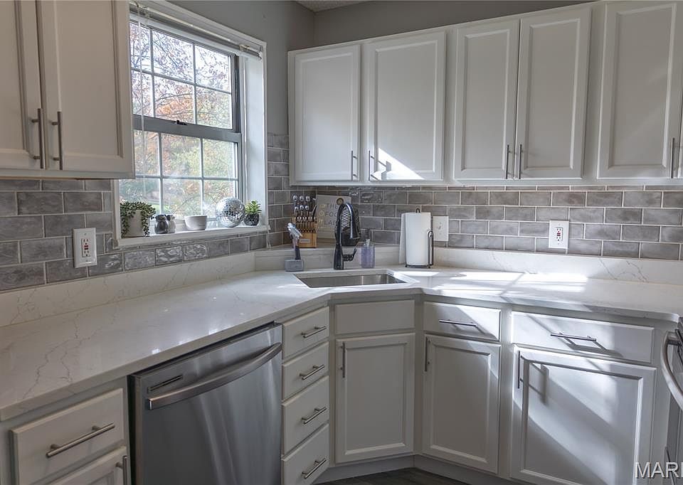 Updated TWO BEDROOM & TWO FULL BATH Brentwood Forest second-floor, one-level condo w/deck overlooking common ground. Significant remodel. Renovated kitchen w/new granite white counters, ceramic tile backsplash, sink, built-in microwave, dishwasher, refinished cabinets, & refrigerator (stays). Fully renovated primary bath w/new sink/vanity, backsplash, mirror, toilet & tiled shower & floor. Renovated guest full bath w/new toilet, tile flooring, backsplash & mirror. New staircase. New premium vinyl plank flooring & updated lighting throughout. New hot water heater, washer/dryer (stays), sliding door, ceiling fans, hardware & outlets. Second floor unit (1107 sqft/large Timberline floor plan) at end of tree-lined street backs to common ground & has side yard. Easy-access off-street parking. Centrally located Brentwood Forest has two swimming pools, tennis courts, walking trails, & clubhouse w/community activities. A beautifully landscaped subdivision w/pond w/gazebo. Just south of HWY 64/40 off Brentwood Blvd, near The Galleria, shopping & restaurants. HOA fee includes: water, sewer, trash, some insurance, landscaping & exterior maintenance & snow removal. Well-maintained, spit-spot clean & Move-In Ready.