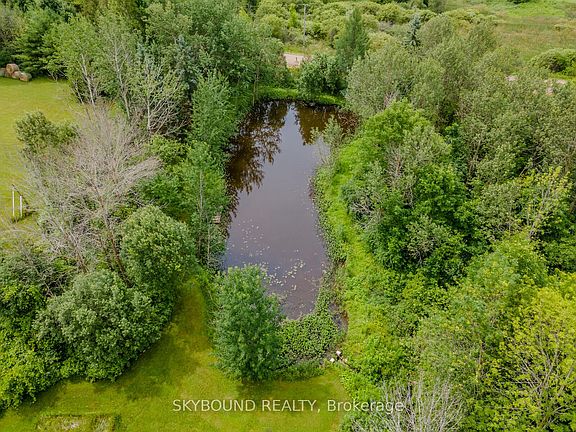 A Unique Opportunity to Own 2 Residences in One Home on a Stunning 4.3 Acre Oasis. This 2 Storey has 3 Bedrooms with the Master Boasting a 5 piece Ensuite, Large Eat-In Kitchen with Stainless Steel Appliances and Large Windows Looking out onto Your Private Retreat. Enjoy the Cozy Open-Concept Living/Dining Room with a Wood Stove to Warm Those Cooler Days. The Second Residence is Bungalow Style with 2 Large Bedrooms and a 5 Pce Washroom. Enjoy the Spacious Living Room and Fireplace along with an eat-in Kitchen with a Walk-out to a Private Deck. There is Access to Each Residence Through the Main Floor Laundry Room. Nestled on your 4 Acres is your own Private Studio along with an Adorable She-Shed with Loft; both are Insulated and Have Electricity. This Gorgeous Property Also has a Pond which is Fed off of A Fresh Spring River and a 24 Round Solar Heated Pool. Who Needs A Cottage When This Home Has it ALL! Zoning is Agricultural/Residential so your Farm Animals are welcome!