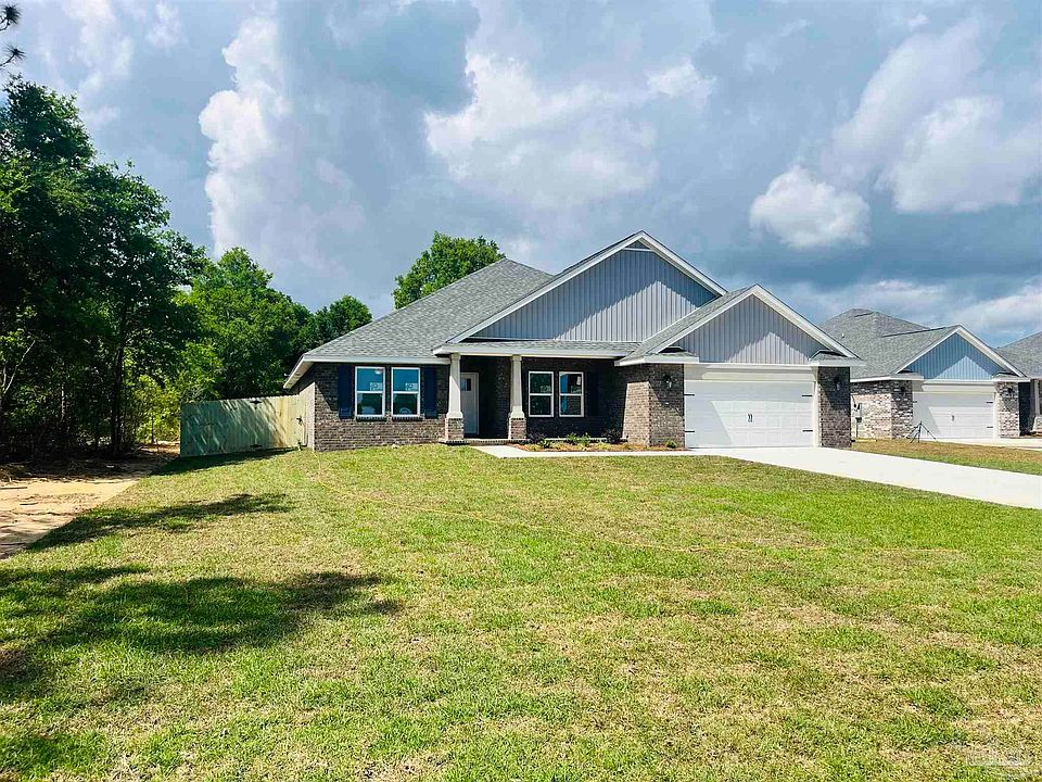 HUGE INCENTIVES! Welcome to Nichols Lake Estates, where rustic countryside charm intertwines with contemporary living. Each home boast expansive lots, including 150+ ft of backyard space. Nichols Lake provides residents with an unparalleled sense of space while offering a perfect fusion of ranch and home. Open-concept living seamlessly merges with curated interiors, reflecting quality and style. The agriculturally zoned properties welcome farm animals, enhancing the serene ambiance of the community. Conveniently and centrally located just off Hwy 87 near I-10, Nichols Lake is just 15 min from Navarre, 15 min from Pensacola, and 30 Min to Hurlburt Field. The ''Turquoise'', one of three distinctive floor plans at Nichols Lake Estates, embodies modern comfort and functionality. This 5-bedroom, 3-bathroom brick home features an open layout ideal for entertaining, including a guest suite with a full bathroom. From the spacious great room to the well-appointed kitchen with stainless steel appliances and granite/quartz countertops. Each home will include the upgrades of Crown molding in common areas and 2" faux wood blinds. Retreat to the grand master suite, boasting trey ceilings, dual walk-in closets, and a luxurious master bathroom with a garden tub and separate tiled shower with dual showerheads. Scheduled completion is 9/20/24. Seize the opportunity to customize your home with interior color choices for flooring, cabinets, and countertops, as well as other optional upgrades. Don't miss your chance to make Nichols Lake Estates your haven call today to learn more and explore our 3D tour for a closer look! Pictures are of a similar home, colors may vary.