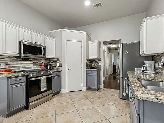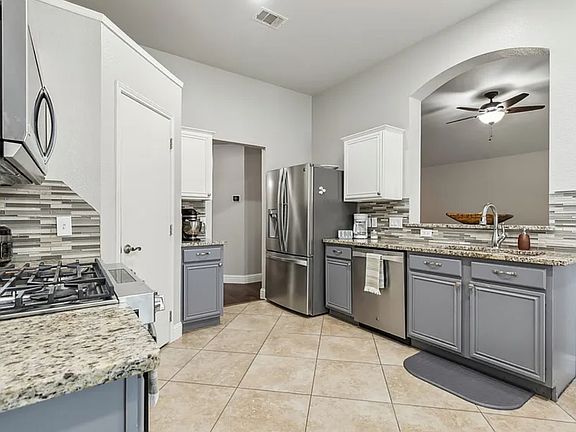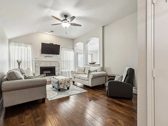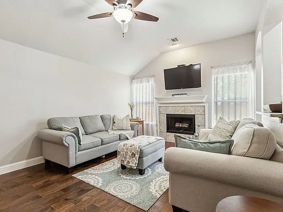 Stunning 3 bed, 2 bath home in a great location. The living area features engineered hardwood floors, a central fireplace, and large windows with views of the backyard. The kitchen includes painted cabinets, granite countertops, a decorative tile backsplash, and stainless steel appliances. The primary suite has engineered hardwoods, good natural light, and an en suite with an updated countertop and painted vanity. Two additional bedrooms one with carpet, one with engineered hardwood share a second bath. Zoned for Prosper ISD.