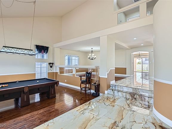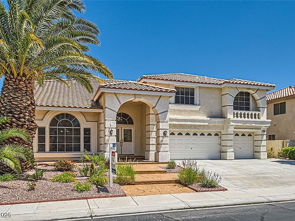 Stunning 5-bedroom home in a gated community with over 5,000 sq ft of living space! Features include spacious bedrooms, a theater room with built-in bar, and a giant upstairs loft. Enjoy upgraded flooring, granite countertops, large kitchen island, and a wet bar off the family room. Includes a formal dining room, separate living room, stone-accent fireplace wall, and abundant built-ins, and an extra storage room. The massive backyard offers an inground pool, covered patio, balcony, storage shed, and lush landscaping with artificial turf. 3 new Trane AC units replaced in 2022, and new pool heater! Prime Silverado Ranch location near shopping, airport, and the Strip. A true entertainer’s dream—don’t miss it