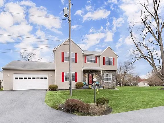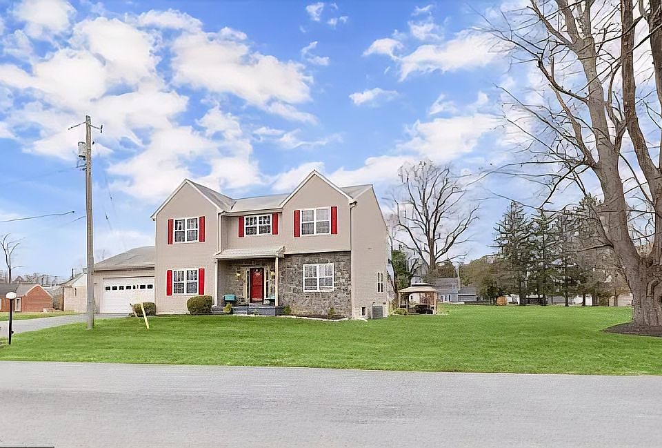 Tucked away on a quiet private block with no through street, this beautifully appointed home features attractive vinyl and stone siding along with a spacious two-car garage. Step into the main level foyer, where hardwood floors flow effortlessly throughout the formal living room, dining room, and family room. The living room is accented with crown molding and recessed lighting, while the dining room offers both crown molding and custom blinds for a refined touch. The family room impresses with high ceilings and a cozy gas fireplace, creating an inviting space for gatherings. The well-appointed kitchen features a breakfast bar, 42-inch cabinetry, stainless steel appliances, ceramic tile flooring, a decorative backsplash, granite countertops, and a sun-filled breakfast area with access to the laundry room, 2-car garage, and rear deck and patio. The upper level hosts a spacious primary bedroom with modern luxury plank flooring, two closets, including a walk-in, and an en-suite bath complete with a jetted soaking tub, walk-in shower, and double vanity. Three additional bedrooms and a hall bath showcasing a beautifully updated ceramic tile walk-in shower with a glass door complete the level. The lower level is designed for entertainment and versatility with an exercise area, a bar area with storage, and an attached full bath. Outside, a detached office equipped with electric, heating, and air conditioning provides the perfect space for client meetings or remote work. For added convenience, major commuter routes nearby include I-695, I-795, and I-83, ensuring easy travel in all directions.