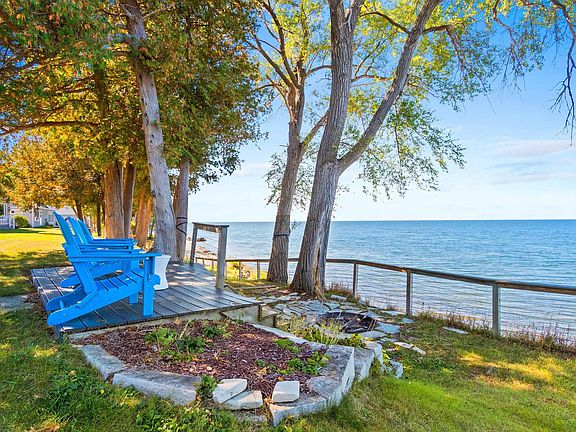 Waterfront summer cottage/condo retreat on the Bay! Completely renovated with quality craftsmanship in 2007 under a prior owner, this 2BR/1.5BA ranch-style condo blends charm, views, and quality. Hardwood floors, Pella windows/doors, custom cabinetry, built-ins, and stone gas fireplace. Open-concept living features cathedral ceiling, granite island, and stainless appliances. New washer/dryer. Propane forced air + A/C. Enjoy sunsets from inside or your Trex deck, evenings by the firepit, and 445’ of shared waterfront. Community amenities include pool, basketball courts, & green space. With low $1,500 HOA dues and income potential, this is a perfect second home or vacation rental. Pride of ownership!