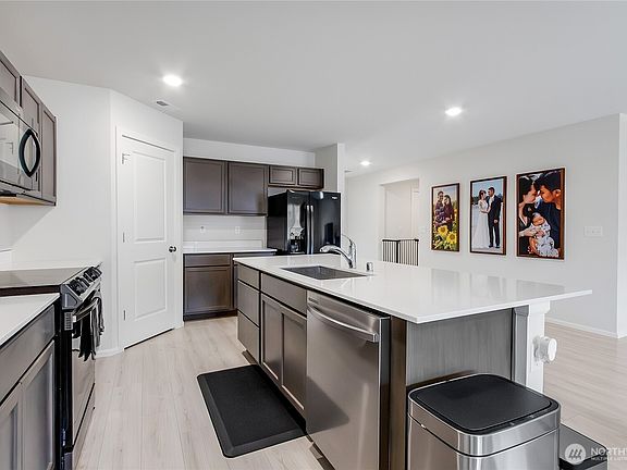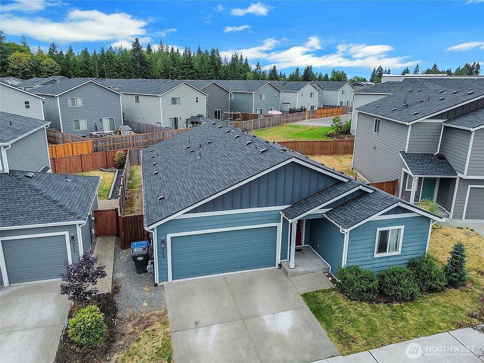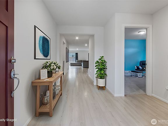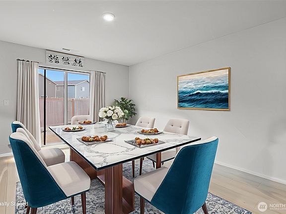 Located in a newer, well-maintained community, this modern home offers a fresh and functional open-concept layout. The spacious kitchen overlooks the great room and dining area which is perfect for both relaxing and entertaining. Two bedrooms share a full bath near the front, while the private primary suite features a walk-in closet and attached bath. Upgrades include a kitchen pantry, grey-stained cabinets, extended laminate flooring in the foyer and great room, and AC prep. Enjoy nearby parks, shopping, and dining, plus a convenient commute to JBLM/Tacoma.