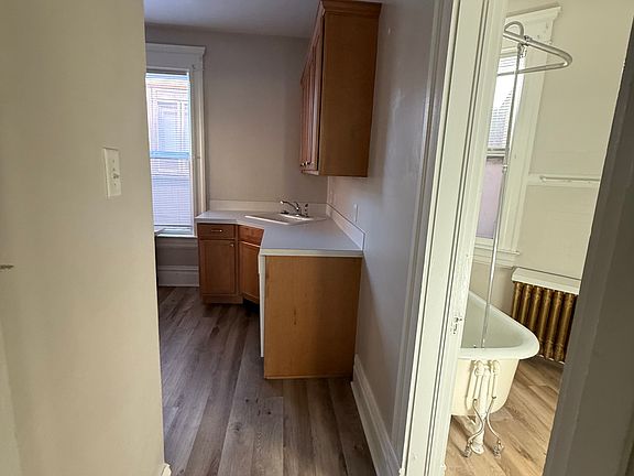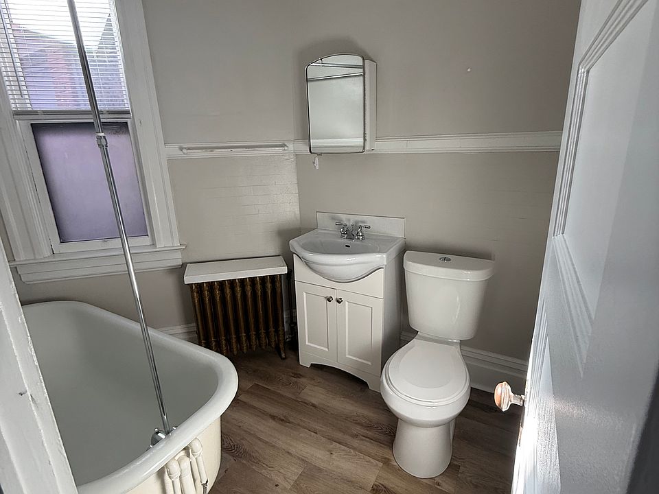 Beautiful historic building. Upstairs unit that has refinished hardwood floors and updated kitchen. All units have geo-thermal heat that is included in the rent, so no heat bills! Water, sewer trash is also included. There is recycling available on sight.