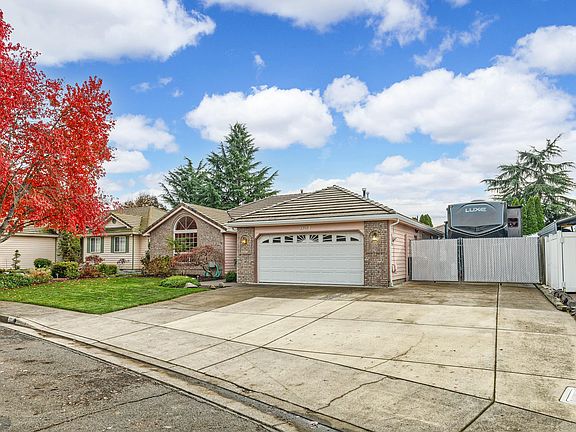 Located in a desirable, well establish neighborhood, this hard to find single-level home offers spacious RV parking including electrical hookup, plus a detached heated shop/garage. This wonderful home showcases some recent updates to include new carpet, new vinyl flooring, new dishwasher, new gutters with guards, fresh interior/exterior paint, and beautiful mature landscaping. Enjoy the spacious living room with a vaulted ceiling, plus a separate family room open to the kitchen, breakfast nook, and a cozy gas fireplace. The primary bedroom boasts a large walk-in closet and patio access. Additional highlights include a covered patio, a tile roof, vinyl windows, wood floor entry, and an indoor utility room with storage cabinets. This great home with all of its features makes this property a must have!