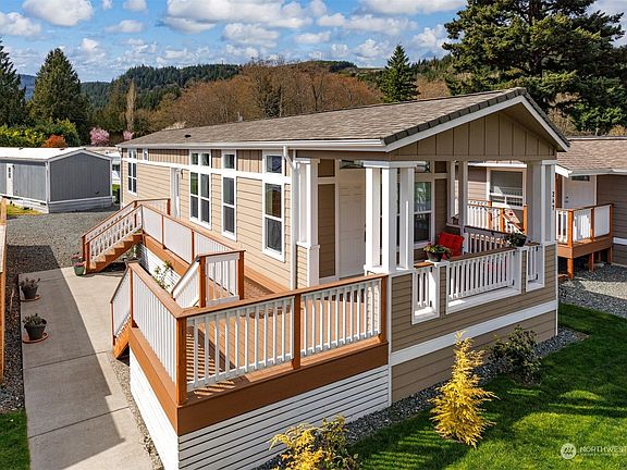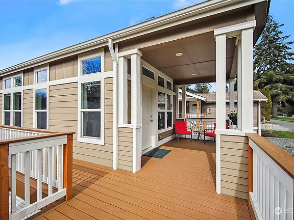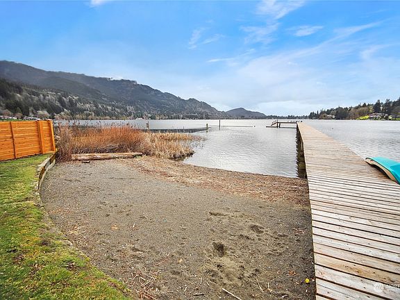 GORGEOUS Lake Samish & mountain views from this newer 2018 home. Relax on your partially covered deck & enjoy Trumpeter Swans & birdwatching. The wrap around deck adds 475 sq ft of extra living area! This wonderful 55+ community is peaceful & relaxing PLUS, walk across the street to enjoy your community beach & dock on those warm spring & summer days! This lovely home boasts 9ft ceilings & vinyl flooring throughout. The eat-in kitchen has everything you need - along with views of the lake. There's an office area + utility closet. Spacious primary bedroom plus a 2nd bedroom/den. Living room has plenty of room to relax & entertain guests. Lovely landscaping, garden space & more! 11 min to downtown Bellingham, 15 minutes to St. Joseph Hospital