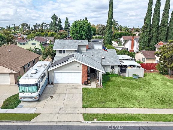 This 5 bedroom, 3 bathroom pool home offering nearly 2,000 square feet of comfortable living space and RV parking is perfect for families and entertainers alike. Step inside to find a convenient main floor primary bedroom suite along with two additional bedrooms and shared bathroom, a spacious family room and a large family sized dining area, plenty of room in the kitchen including ample cabinet space with a wine refrigerator, perfect for hosting those Sunday dinners. Upstairs you will find the 4th and 5th spacious bedrooms and your 3rd bathroom. The open layout seamlessly connects indoor and outdoor living, leading to a backyard built for entertaining. Enjoy your private backyard oasis featuring a sparkling pool, spa, and a fully-equipped outdoor kitchen with a built-in BBQ, oven/stove, warming drawer, commercial sink, two ice makers, refrigerator, and an outdoor TV—all under a covered patio perfect for year-round gatherings. Fruit trees add charm and a touch of nature to the backyard, including an orange tree, lime tree, and a banana tree, and some strawberries in the garden area as well. Additional highlights include a newer roof (about 4-5 years old), leased solar panels through SunRun for energy efficiency and a great neighborhood with top rated schools. Don't wait to come make this home your own.
