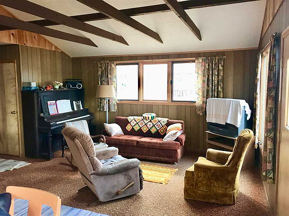 Great two bedroom camp with open concept living, dining, and kitchen area. Has great front deck with views of the Dead River. Sandy Beach for some summer time fun. Drilled well and Septic. Could be year round home with a little work. Part of the Dead River Camper's Association.