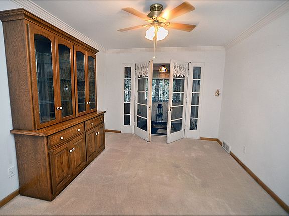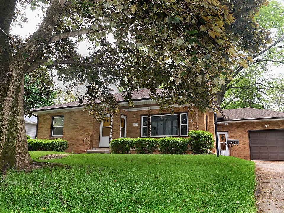 Southside 2-bedroom, two bathroom, 1-story brick ranch-style home. Features include a large living room with stone fireplace and crown molding. Dining room with glass french doors to the sunroom and private backyard with brick patio. Eat-in kitchen has pocket doors, newer cabinetry, and includes appliances. Two large bedrooms with double closets, including the master bedroom with hardwood floors. Natural woodwork and possible hardwood floors under most carpeting. Semi-finished family room in the basement 13 x 36 with cabinets for extra storage along with a 2nd shower and laundry. Extra deep 1.5 car garage. Newer roof and mostly updated electric.
