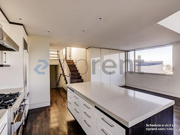 Breathtaking 2 bedroom, 2.5 bath + loft + garage parking. Contemporary, open-space layout with a 20-foot high ceiling above the living/dining room and radiant floor heating throughout. Two en-suite bedrooms plus a large loft that opens out onto the family room below. Each bedroom has its own full bathroom plus a downstairs powder room for visitors. Attached garage car parking plus ample street parking. One side of the house is almost entirely made up of windows providing fantastic views of Downtown San Francisco, the Bay, and Mount Diablo in the East Bay. Large outdoor patio with views and with room for barbeques. Both floors have dark oak wood with radiant heating. Chef's kitchen with Wolf gas stovetop, Miele dishwasher, Subzero refrigerator, and large kitchen island. Brand new washer/dryer. Two blocks to Philz Coffee, 24th Street, and the newly renovated neighborhood park with playground, tennis court, and dog park.