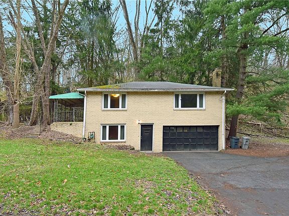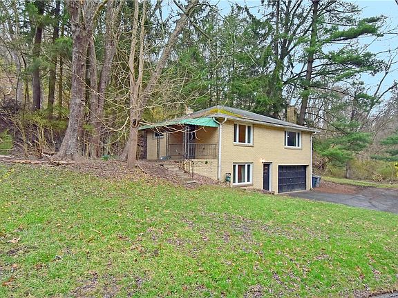 Great opportunity to own 5.6 acres within 15 minutes to Pittsburgh! Property is sub-dividable pending Township approval. Large storage area and den in lower level that previous owner used as a wood crafting work room. Main floor offers a large living room with a gas log fireplace, Country sized eat-in kitchen with a patio off to the side, 2 generously sized bedrooms with wall of closets in each. Hardwood floors in most of the upstairs in good shape but need refinished in some of the rooms. House needs some updating but a solid house.