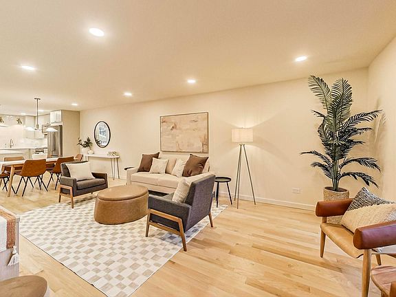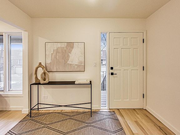 This meticulously renovated 3-bedroom, 2.5-bath townhome by LRS Design+Build is a true masterpiece, located in the highly sought-after Glenview neighborhood within top-rated Districts 34/225. Just a short walk to downtown Glenview and the Metra, this home offers the perfect blend of modern luxury and timeless design. With an impeccable Coastal-Midcentury aesthetic, this open-concept layout boasts a spacious kitchen and expansive living/dining area that seamlessly flows together. The home is adorned with light oak floors, recessed lighting, and stunning floor-to-ceiling south-facing windows that flood the space with natural light. The kitchen is an entertainer's dream, featuring an oversized island with seating for three, abundant storage, a striking Zellige tile backsplash, luxurious Calacatta Valentin quartz countertops, brass Kohler fixtures, and top-of-the-line KitchenAid professional series stainless steel appliances. The dining area is ideal for hosting, comfortably seating 6-8 guests beneath an eye-catching brass chandelier. The first-floor color-drenched powder room makes a statement with Calacatta Valentin quartz countertops, marble hexagon floors, and sophisticated brass sconces. Upstairs, you'll find three generously-sized bedrooms, including a lavish primary suite with a walk-in closet and spa-like ensuite bath. The ensuite features a dual vanity with brass hardware, vintage-style globe sconces, Calacatta Valentin quartz countertops, and a stunning walk-in shower with matching tile and a frameless glass door, all complemented by brass Kohler plumbing fixtures. The hallway bathroom offers a large vanity with pendant lighting, Calacatta Valentin quartz countertops, fluted light-wood-look tile backsplash, and a shower/tub combo with matching tile and brass Kohler fixtures. The main floor office provides a perfect, light-filled space to work from home, with large south-facing windows and sliding doors opening to a private deck. The finished lower level includes a built-in mudroom with cubbies and brass hardware, a storage room, utility room, play area, and a laundry room equipped with side-by-side black stainless LG washer/dryer and a large sink with brass fixtures. The attached 2.5-car garage offers ample additional storage space. This exceptional townhome is an absolute must-see, offering an ideal combination of design, functionality, and location. Come experience the luxury this home has to offer!
