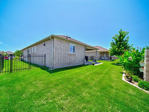 Beautifully upgraded Del Webb at Trinity Falls home offering resort-style living in a vibrant 55+ active adult community. This one-story home features 2 bedrooms, 2 baths and a flex room perfect for an office, hobby space or quiet retreat. The open-concept design highlights engineered wood floors throughout (no carpet), tray ceilings in the living, dining and primary bedroom, and a granite kitchen with upgraded backsplash, raised dishwasher, designer sink, slide-out cabinet storage and above-cabinet lighting. Both bathrooms include comfort-height commodes, upgraded showers and professionally installed grab bars for added convenience. The primary suite features a spacious walk-in closet and ensuite bath with dual sinks. Enjoy a covered front porch and covered back patio, a semi-private fenced yard with stone privacy wall and professional landscaping with stone borders. Smart features include a Ring video doorbell and Ring floodlight camera. Residents enjoy full access to Del Webb and Trinity Falls amenities, including a resort-style pool and hot tub, pickleball and bocce courts, fitness center, coffee bar, clubhouse and numerous clubs & social events—from wine nights and bunco to ping pong, Mah-Jong, Spades and walking groups. Conveniently located near Starbuck's, Buc-ee’s, H-E-B, dining and new retail along US-75, this low-maintenance, lock-and-leave home offers the perfect blend of comfort, community and lifestyle in McKinney’s premier active-adult neighborhood.