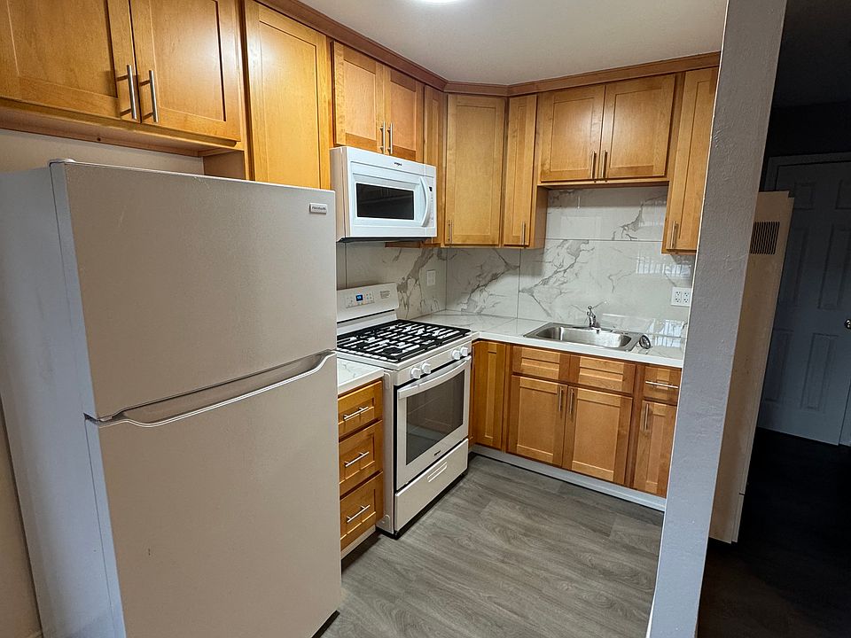 * We've just remodeled the kitchen with all new cabinets, countertop and backsplash, along with a new 30-inch gas range, built-in microwave and new refrigerator.