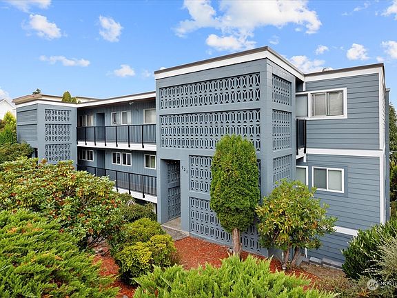 Fall in love with PNW sunsets over Bellingham Bay! Floor to ceiling windows frame 180 degree views of downtown Bellingham and the waterfront, while sweeping natural light fills the main room. The expansive west facing deck is perfect for a morning reset or evenings entertaining friends with a million dollar backdrop. A perfectly updated kitchen with quartz countertops, gray shaker cabinets and stainless appliances give the unit a modern, elevated feel. Two generous sized bedrooms and a large bathroom with new vanity and quartz counters. Enjoy the convenience of one assigned covered parking space and close proximity to WWU, parks, and downtown Bellingham!