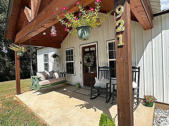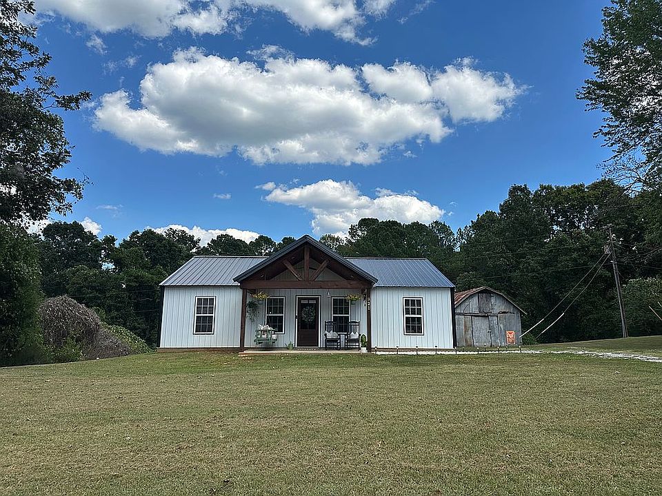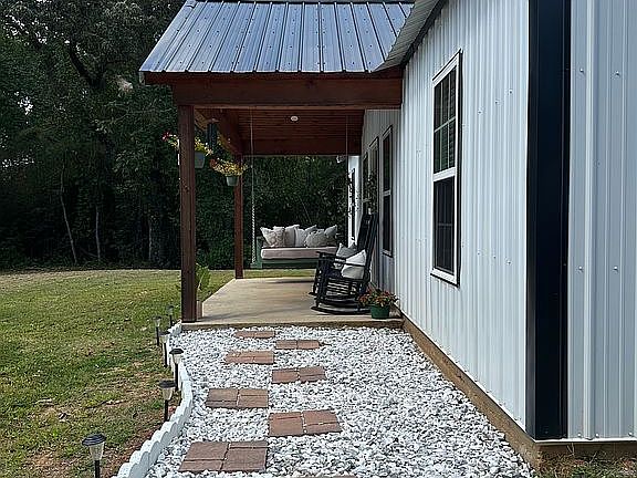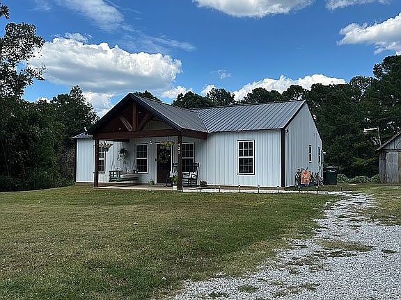 FOR SALE BY OWNER. This beautiful custom built metal house with metal roof is nestled on 6.4 +/- acres just outside of city limits. This home offers stained concrete floors and recessed lighting throughout, vaulted ceiling in main living area, open floor plan with split bedrooms, corner shower in hall bath, tankless water heater, custom cabinets, large kitchen island with newly installed butcher block countertop, walk-in closets in all 3 bedrooms, laundry/ mud room that may be entered from the back, and a 24x16 lofted metal barn shed with concrete floor. Enjoy late evenings or early mornings from the covered front porch that offers nice walnut stained wooden details. This home is move-in ready. Call or text today to schedule a showing!