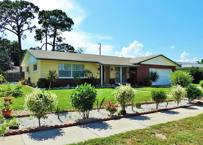 This wonderful 4 bedroom POOL home with great curb appeal and gorgeous landscaping is located in the heart of Rockledge close to shopping, restaurants, and I-95. Home is freshly painted inside and out with separate living areas, and an ideal split floorplan. Updated kitchen overlooks sparkling pool and is perfect for the gourmet cook in your family. Huge pool for relaxing after work and on weekends with direct access from master bedroom and living area. Fully fenced yard with spacious shed as a bonus. Newer a/c unit, and front loading washer & dryer is included! The 2 car garage is over sized for your vehicles and extra storage. This home is ready for you to move right in. You need to see this home for yourself.