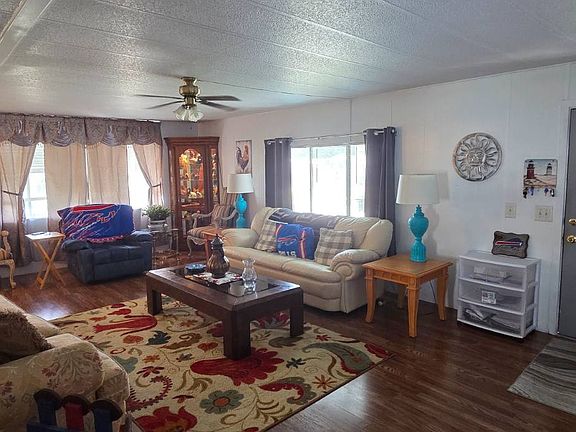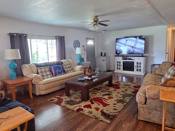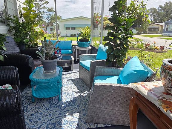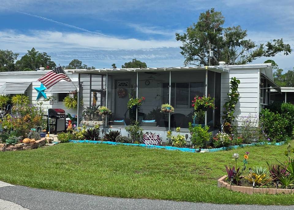 Welcome to this charming home situated on a desirable corner lot just a short drive to Brownwood Paddock Square in The Villages - where you can dine, shop, enjoy live entertainment, and dance the night away! Also, close to banking, medical, shopping, The Florida Turnpike and I75. Location is Prime! Relax in the screened-in lanai, surrounded by beautiful landscaping, blooming flower pots, and stylish furnishings. A true plant lovers paradise. It's the perfect spot to watch neighbors stroll by or invite friends in to socialize. Interior features include a spacious living and dining areas with upgraded plank flooring, an updated kitchen featuring newer countertops, flooring, and modern appliances. Indoor laundry room for added convenience. Large owner's suite with walk-in closet, double vanity sinks, and a walk-in shower. Central A/C throughout the home, with supplemental window units for extra comfort. Additional features include a new 8x8 shed with electric which provides ample storage, back door ramp access for easy entry. Home is coming furnished which will make your move easy! Enjoy the benefits of all four nearby communities, including access to 4 pools and 4 recreation centers. This home offers both comfort and convenience in one of the most sought-after areas in Wildwood. Whether you're relaxing at home or enjoying the vibrant community life, this property has it all!