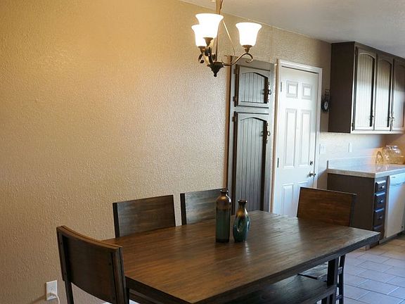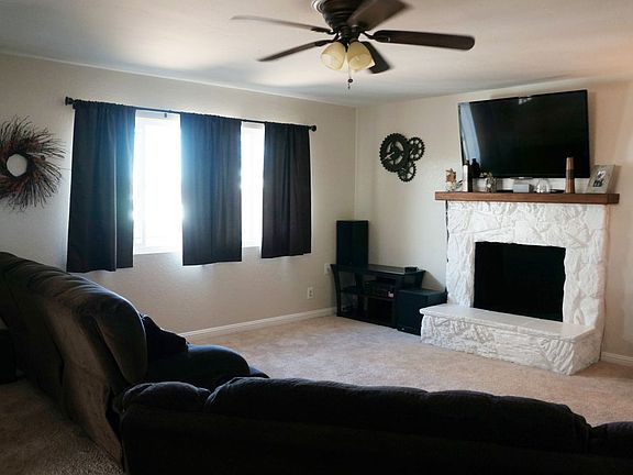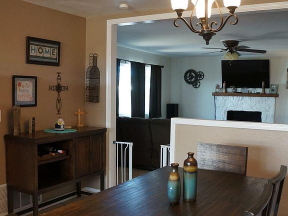 Adorable home with lots of updates. Living room has carpet, fireplace and lighted ceiling fan. Dining with tile flooring and newer chandelier. Kitchen features tile flooring, newer granite tile counters, refinished cabinets, new sink and faucet. Two guest bedrooms are carpeted, lighted ceiling fan and custom blinds. Guest bath with newer tile flooring and vanity. Tub/shower. Master suite has carpet, lighted ceiling fan and custom blinds. Master bath with tile flooring and newer vanity. Walk-in shower. New furnace and evap cooler this year. Water heater in 2015. Newer windows (except in garage).