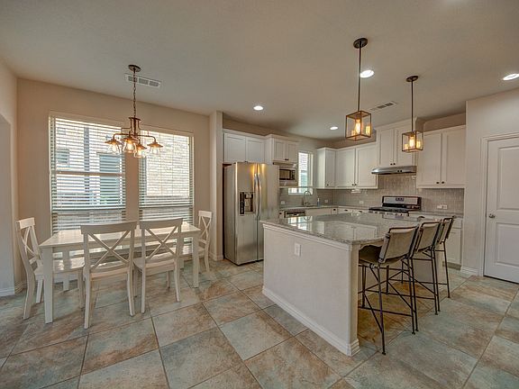 Gorgeous 2-story in Magnolia of Lantana! Versatile and spacious floor plan with two bedrooms downstairs and two upstairs, perfect for privacy and functionality. The inviting primary suite features a large walk-in closet and a serene, relaxing ambiance. The open-concept kitchen with granite island flows seamlessly into the living room, highlighted by a soaring ceiling and cozy fireplace—ideal for everyday living or entertaining. Upstairs includes a dedicated theater room and a separate game room offering plenty of space to unwind. Private backyard is perfect for gatherings or quiet evenings. Lantana residents enjoy award-winning amenities including walking trails, community pools, tennis and pickleball courts, golf course, fitness centers, and top-rated schools. Conveniently located near shopping, dining, and major freeways. This home has it all!