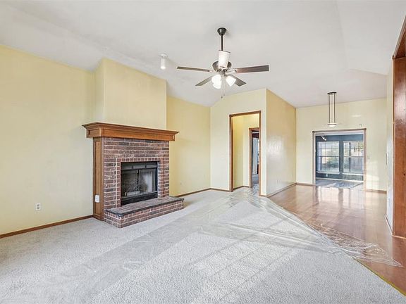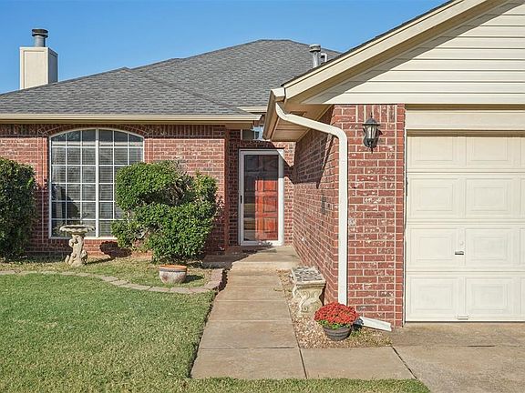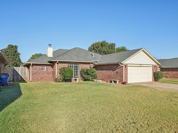 Open to public 10/2/24 and 10/3/24 1-4 pm! This cute 3-bedroom, 2-bathroom home in the heart of Mustang offers convenience, just minutes from shopping, dining, and local amenities. The large living room has a cozy fireplace for those cold winter days and is perfect for relaxing or entertaining guests. The kitchen is equipped with stainless steel appliances and has plenty of cabinet storage, perfect for all your cooking needs. The spacious primary bedroom features a large bathroom with double vanities, a whirlpool tub, and an amazing walk-in closet. The guest bedrooms have larger than normal closets. The guest bathrooms also have double vanities and there's a versatile bonus room that can be used as an office or flex space. New carpet runs throughout the home, adding a welcoming feel. The fenced-in backyard is ready for outdoor fun, with a covered patio perfect for entertaining and two storage sheds for extra space. Part of the fencing is new! Come see this Mustang charmer!