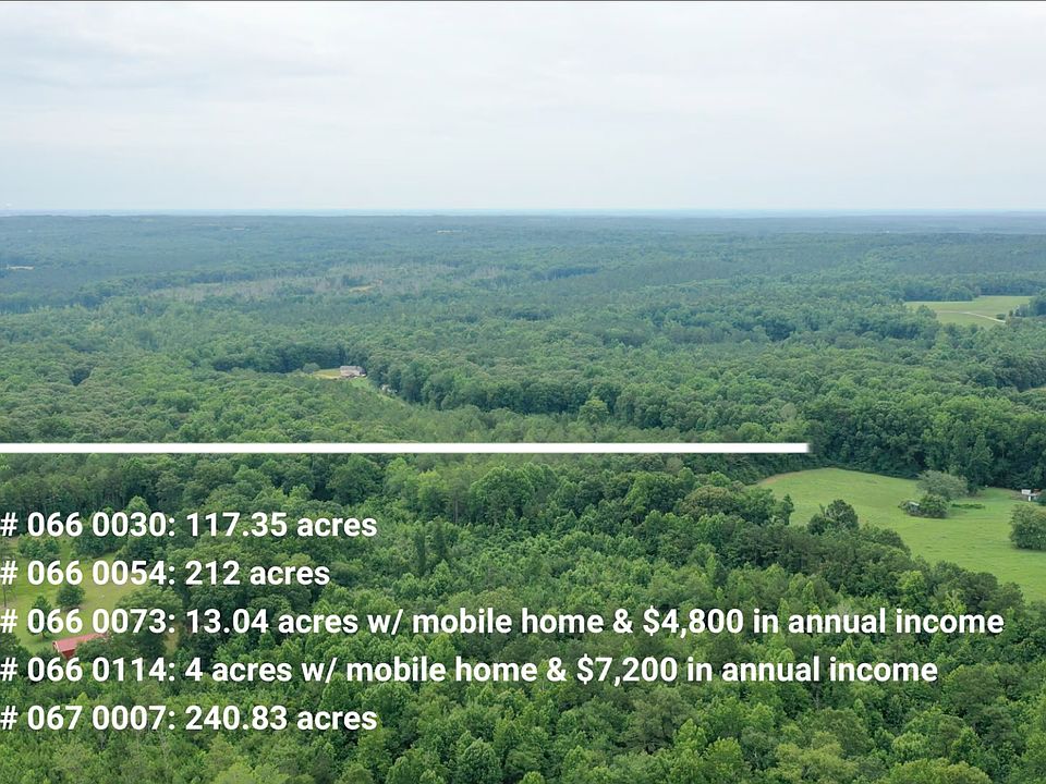 5 parcels totaling 587.22 acres. Over 2 miles of road frontage on Needmore Road, Roopville Veal Road, Attaway Road, and Scenic Route 5. There are 2 income producing mobile homes on the property as well. Would be a great timber investment. Timber breakdown: 22 acres Planted Loblolly. 2 years old 146 acres Natural Loblolly. 3 years old 24 acres Loblolly (thinned). 19 years old 79 acres Loblolly (thinned). 22 years old 146 acres Loblolly (thinned). 25 years old 24 acres Loblolly (thinned). 27 years old 139 acres Mixed hardwood/Pine 7 acres Open roads/food plots/etc. For aerial footage of the property please visit: https://www.youtube.com/watch?v=cqhzJBNUBEM