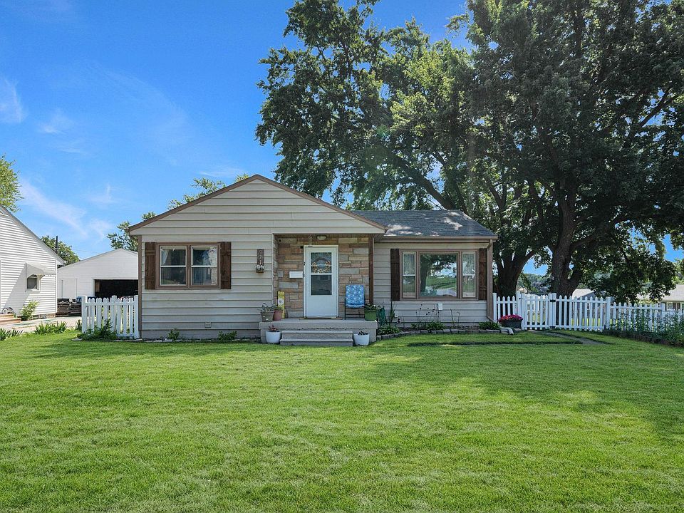Cute as can be! This warm and inviting house is the perfect place to call home! Step right into the bright and spacious living room that opens to the nice sized dining area with hard surfaced flooring. The dining room leads to the beautiful kitchen with painted cabinetry, ample cabinetry and shelving plus a gorgeous tiled backsplash. Just off the kitchen is an open area perfect for a coffee bar or potential drop area by the side door. The main floor also features two generously sized bedrooms plus a full bathroom conveniently located between the bedrooms. You'll be sure to appreciate the lower level which features a fantastic family room space, a great office space and plenty of storage space. Enjoy the outside of this home as well! Sit and relax on your covered back patio that overlooks your fenced yard. This home also features a heated detached two stall garage. Take a look at this great home today!