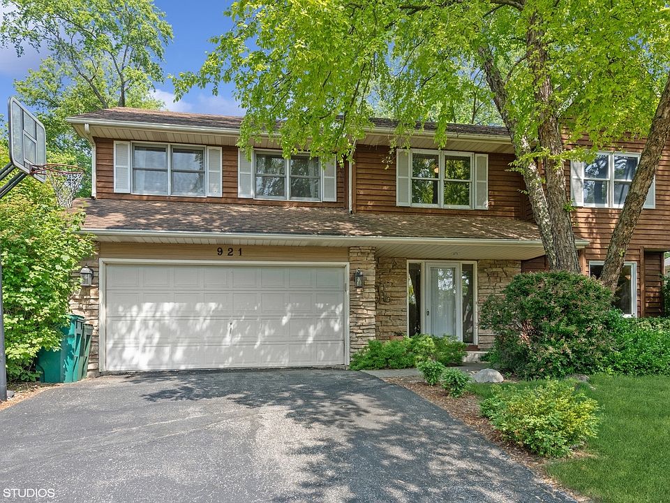 Enjoy quiet summer evenings in this magical backyard with two-tier deck, gardens, play area with swing set, mature trees and secluded Unilock firepit area. Natural light floods this quintessential colonial with popular layout: large living room with bay window, formal dining room to accommodate all your guests, freshly painted powder room with gold framed mirror, and newly painted kitchen with expansive central island, loads of cabinets & counterspace, pantry, new dishwasher (2021), double stainless sink with newer disposal and gooseneck faucet, GE gas range, and spacious dining area overlooking private grounds. Family room features fluted millwork & tile surround fireplace with custom mantel with eyeball lights, fresh paint, and doors to deck. Vaulted ceiling in big primary suite with huge customized walk-in closet, and jetted tub in bath. Bedrooms 2, 3, & 4 offer plenty of closet space and lighted ceiling fans. Hall bath with ceramic tile floor and linen closet. The unfinished well-lit basement with laundry and utility sink provides tons of storage and opportunity for future expansion. Heil furnace. Newer water heater. New sump pump. Roof is 10 years old. Gutter guards. Easy access to shopping, restaurants, access roads. Desirable District 56 schools. Wander down this tree-lined dead-end street with custom homes and you won't want to leave!