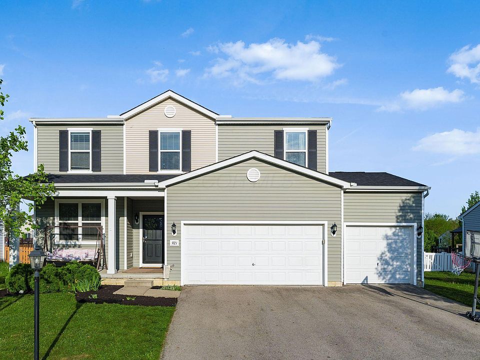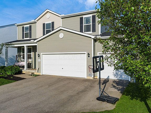 Welcome to your dream home! Discover this spacious 4-bedroom home that perfectly blends comfort and style. Nestled in a cul-de-sac, this property offers ample living space with 9ft ceilings, a modern kitchen with stainless steel appliances, and a bright open-concept kitchen, dining, and living room area that creates a welcoming atmosphere. The master suite boasts a walk-in closet and an ensuite bathroom, providing a private retreat. Freshly painted and featuring new flooring throughout entry level. This home is move-in ready and waiting for you. Additional highlights include a fenced in back yard, spacious loft, full basement, entryway office/den, 2nd floor laundry, ceiling fans, and a three-car garage. Convenient location and commute to Columbus. Schedule your showing today before it's gone. Professional pictures coming soon!