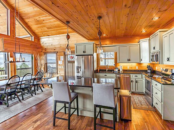 Elegantly designed and fully furnished (excluding soft goods), this upscale home features a chef's kitchen with premium appliances, a soaring great room with a stone fireplace, and multiple entertainment spaces including gaming tables on the terrace level. Outdoor living is at its finest with wraparound multi-level decks and porches, as well as a custom firepit areaperfect for enjoying the crisp mountain air and abundant wildlife, including frequent visits from local deer.