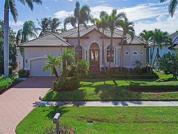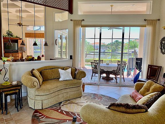 Welcome to the prestigious Copperfield Court area of Marco Island & this gorgeous, custom-built, 3-bedroom + office/3-bath DIVCO home. You'll love the southern exposure, lovely bay views & close proximity to the private Residents' beach. The grand, arched entryway leads to a beautifully-upgraded interior featuring soaring tray ceilings w/exquisite lighting, tile floor in the main living area, custom window treatments, plantation shutters & crown molding. Open great room floor plan is perfect for entertaining & offers lovely lanai, pool & bay views. Gourmet, eat-in kitchen w/SS appliances, new cooktop Oct 2020, butler's pantry, wet bar, granite counters & breakfast bar. Separate dining room for formal occasions. Unwind in the master suite w/grand double door entry, lanai access & luxurious en-suite w/dual vanities & sinks, walk-through shower, separate tub & private WC. Split bedroom plan ensures guests' privacy with 2 additional bedrooms & full baths. Huge 90-degree sliding pocket doors open to beautiful brick paver lanai w/summer kitchen & large heated pool & spa, plus pool bath. Bring your boat - there's a large dock with water & electric available & a 12,000 lb lift.