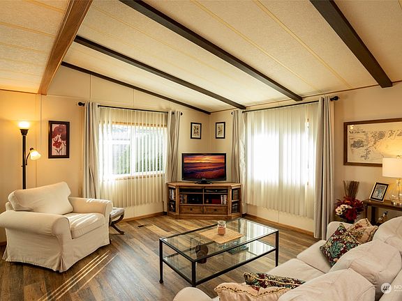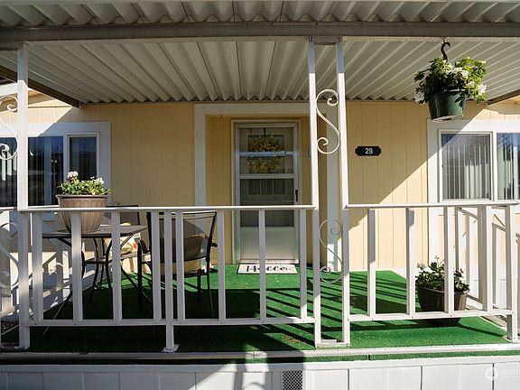 Well maintained 2 bed, 2 bath home in Hide-a-way park, a 55 and over manufactured home community. New luxury vinyl plank flooring through-out. Home has a spacious living room, formal dining room with built-ins, kitchen with breakfast bar, plus a second living room area. Updated vinyl windows and both bathrooms have new Kohler toilets. Large covered front porch and attached carport with storage area and separate covered, private area for BBQ or just relaxing. Park approval needed, rent space is $450 and covers water, sewer, garbage and recycling.