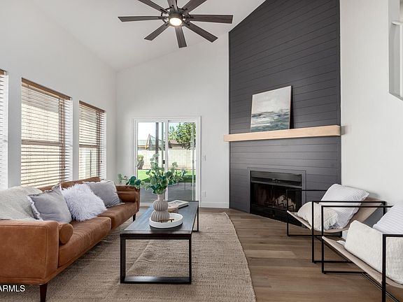 Come see this fully renovated home in the welcoming Stonebridge Gardens! Fall in love with the interior, featuring spacious living areas with luxury vinyl plank and new carpet flooring, soaring vaulted ceilings, a shiplap accent wall with a fireplace for cozy evenings, and plenty of natural light. The beautiful kitchen features custom shaker cabinetry, tile backsplash, a quartz peninsula with a breakfast bar, a pantry, and stainless steel appliances. The main bedroom offers plush carpeting underfoot for added comfort, double closets, and a bathroom with dual sinks. The backyard is complete with a covered patio perfect for unwinding after a long day, and a fresh lawn. Don't forget to visit the community's pool for a refreshing time! Welcome home!
