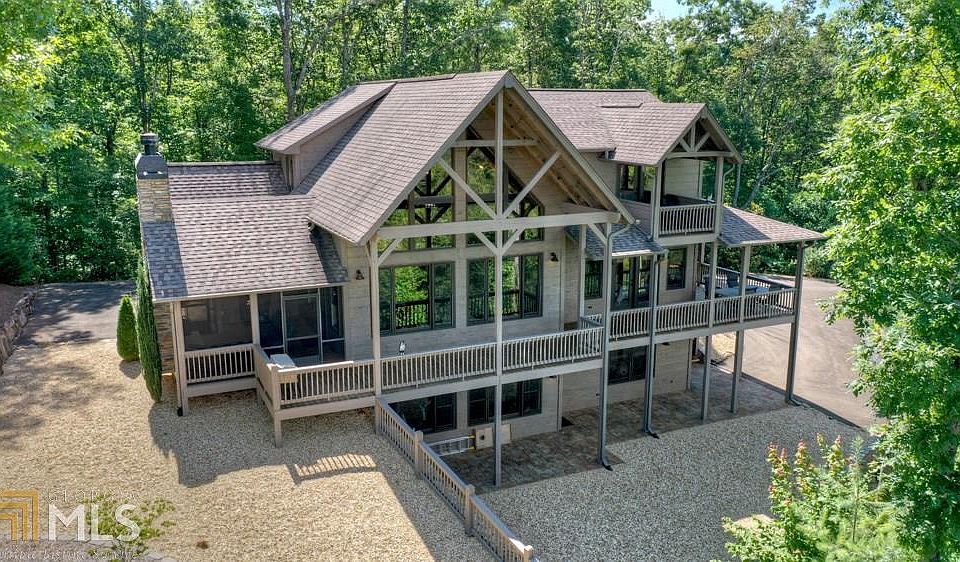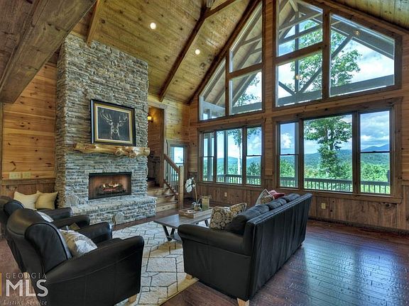 Upscale Rustic Living in this Beautiful Mountain Home combined with design touches of an urban loft. Stunning year round MTN VIEWS of the Cohutta National Forest. Soaring vaulted ceiling w/hand hewn beams, 2 story FP & wall of windows add WOW to Lodge-like great room. Well appointed kitchen; dining area; fantastic outdoor living w/screened porch, fireplace & decks galore! Master on main w/spa like bath. Upper level has lg loft w/SUNSET VIEWS, 2 BR's & full bath. Walk-out terrace level has family room, wet bar, guest BR, full bath & stone patio. Private setting on 1.78 acres; river rock, all natural landscaping; energy efficient 2 zoned HVAC; Wifi thermostats. High speed internet, ideal for working from home & movie streaming. Selling FURNISHED. All paved rds, gated, great location between Blue Ridge & Ellijay. Enjoy nearby wineries, golf, kayaking, hiking & waterfalls.