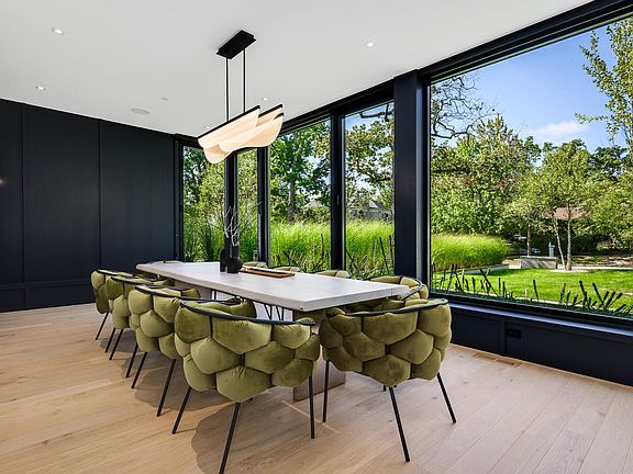 Glencoe! The most stunning and unique home in the North Shore. This one of a kind modern masterpiece offers an open floor plan with hardwood floors and large European windows providing tons of natural light throughout the entire home. The first floor features sun drenched dinning room and the kitchen boasts leather finished marble, two islands, Wolf and Thermador appliances, custom cabinetry with tons of storage and a butler pantry with speed oven and warming drawer. Living room with gas fireplace with limestone mantel and custom shelving with LED lights leading to huge patio with grilling station, outdoor in-ground heated pool, and a separate pool house with a shower and bathroom. On the second floor, you will find five bedrooms including the primary suite which has a large walk in closet with custom shelving and LED lights, large en-suite bathroom with heated floors and high end finishes, soaking tub, steam shower, gas fireplace with Taj Mahal limestone mantel and a massive outdoor deck with access to the patio off of the living room. Also on the second level, you'll find four more great sized bedrooms with two of them having private balconies all with en-suites bathrooms with heated floors. The lower level features a large fitness room with a sauna and shower, theater room, temperature controlled wine cellar, large recreational area with wet bar, and sixth bedroom with an en-suite bathroom. Heated floors throughout the entire basement, along with a heated walkway and driveway. Three car heated garage with additional covered parking under the carpport and mud room and dog shower right when you enter from the garage. The home has smart home features, mud room, three HVAC systems, central vac throughout and is pre-wired for surround sound and cameras. Very convenient location close to downtown Glencoe, restaurants, shopping, beaches, public transportation, and highway access.