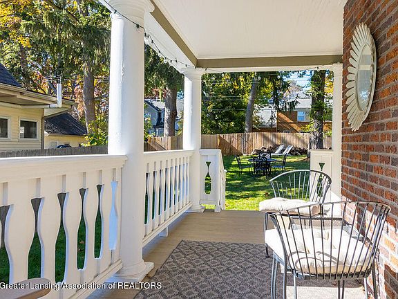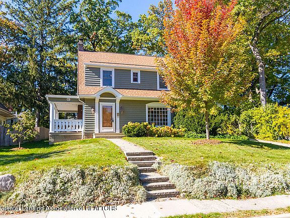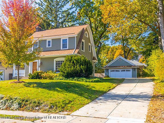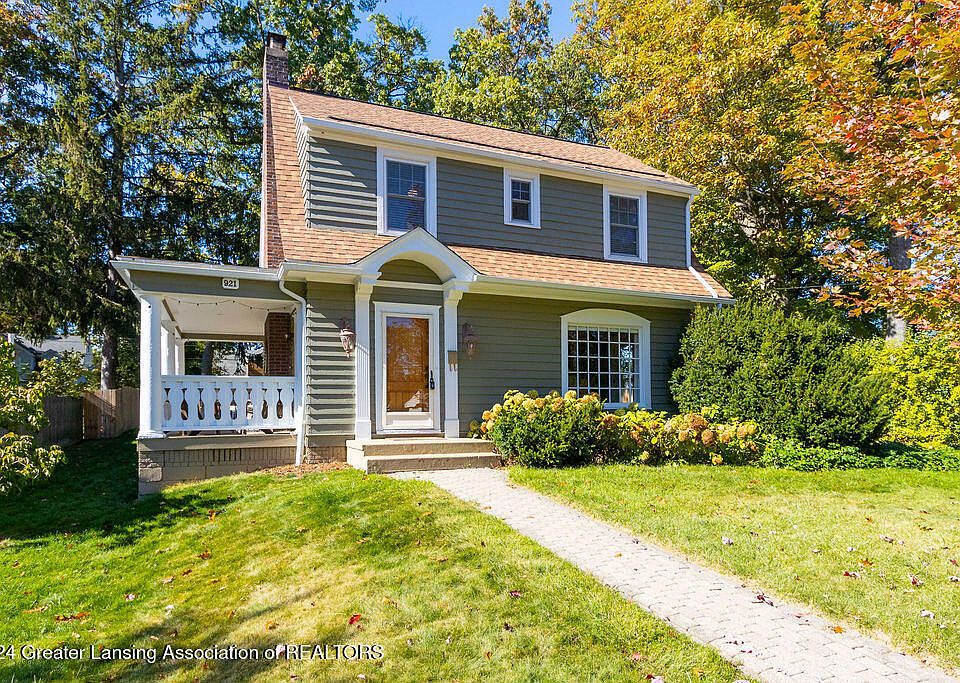 This absolutely charming Dutch Colonial home is nestled on 1 1/2 lots in a prime location close to MSU and Downtown East Lansing! The home boasts gleaming hardwood flooring and quaint features throughout, accenting its well-planned layout. The living area is graced by a wood burning masonry fireplace plus covered side porch and backyard access. Adjacent, the spacious eating area has double French doors to the outside, which add ambience to the room, and functions great for entertaining or daily family dining. Enjoy the updated kitchen with lovely custom cabinetry to the ceiling, gas range, plenty of workspace, and solid surface countertops. Nearly 1,550 square feet of living space, the home is equipped with two full baths and is currently used as a two bedroom. The previous owner had two bedrooms made into one, offering a large primary with double closets and an office space. Need three bedrooms? The house could easily be converted back to three bedrooms as desired! Enjoy the walk-up attic for storage or perhaps a living space, as this room could be quickly transformed into a great family room, exercise area, or flex space. A rec room in the lower-level showcases wainscoting and panel molding, in addition to a large full bath and laundry room. Enjoy the fabulous 2.5 car detached garage with a service door that architecturally matches the house, plus a newly fenced spacious backyard. New CertainTeed roof and gutters in 2023. Exterior of house freshly painted in 2023. Energy efficient double hung windows throughout plus updated baths. See list for other seller upgrades. Walking distance to the Public Library, schools, eateries, shopping, MSU, and easy highway access. Take your place in history with this one-of-a-kind charmer. Seller reserves: T. V's and Dyson mounted in the laundry room.
