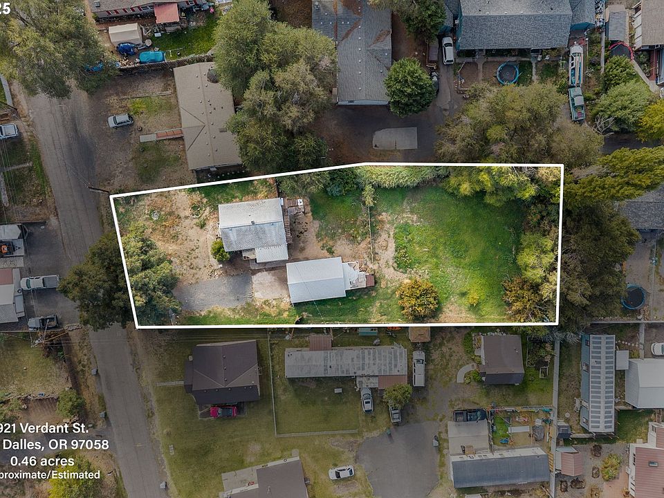 Oversized .46-acre lot located in central location in The Dalles, Oregon offering convenient in-town access with a private setting. The building site is set back off Verdant street, allowing for privacy and a spacious, grassy backyard with mature trees and landscape. Schools, parks, and everyday amenities just minutes away, this property is a great opportunity to make it yours! The existing home and detached garage are of no value.