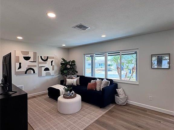 Charming, Move-In Ready Seminole Home! Welcome to this beautifully updated 2-bedroom, 1-bathroom home with a 1-car garage, offering both comfort and modern style. The open floor plan creates a spacious, inviting living area for entertaining or everyday living. Enjoy the newly remodeled kitchen featuring quartz countertops, stainless steel appliances, and plenty of storage. Wonderful for cooking or hosting. The home boasts new flooring throughout, fresh interior and exterior paint, updated lighting, and modern hardware and fixtures for a polished, turnkey feel. Significant recent upgrades include a brand-new roof with "third nail" installation that includes supporting documentation and a wind mitigation report, new ductwork, and new screens on the back patio. The HVAC system and water heater were replaced in 2020, ensuring reliable comfort year-round. Step outside to a maturely landscaped backyard with a rose garden and ample space for outdoor activities, relaxation, or RV/boat storage. Conveniently located near schools, parks, and shopping centers, this home blends modern updates with everyday functionality in a desirable Seminole neighborhood. Move in and enjoy everything this charming home!