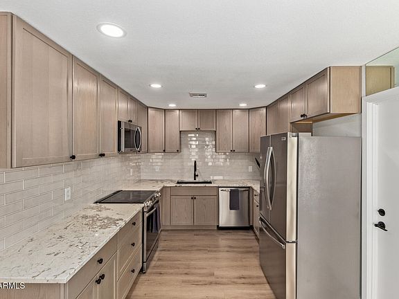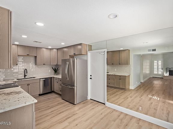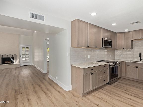 Complete and TOTAL remodel. New EVERYTHING, from floors to ceiling. Even roof rerolled with elastomeric and 10-year warranty. Upgraded kitchen with new cabinetry, stone countertops, full tile backsplash and all new Frigidaire Gallery SS appliances. Wood LVP, five-inch baseboards and paint throughout interior. New light fixtures, fans and LED canned lighting. Plantation shutters, and security shades for perfect lock and leave. All this on an oversized private lot in desirable Scottsdale Vista with blooming grapefruit, orange and lemon trees. The perfect backyard park oasis. Conveniently located with easy access to community pool and spa, and all Scottsdale has to offer. Too much else to mention, a true MUST SEE.