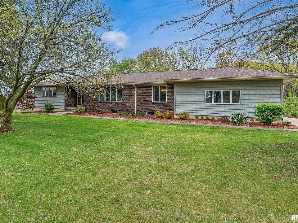 COMING SOON! Roomy walkout ranch on 4.94 acres in Taylor Ridge, IL with hard surface roads. Peaceful location designed to offer a serene atmosphere in a quiet semi secluded location with plenty of outdoor space. Four bedrooms and three full bathrooms on main level of home. House is placed on lot a bit further back from road, some grassy area surrounds the house then transitions to a wooded retreat. Generous room sizes, two wood burning fireplaces and oversized sliders to large no care deck, which was replaced in '19. So many updates! Dates per seller: Living & Dining Room Carpet '25, Professionally landscaped '20, Garage Door and Opener '14, Roof '17, Kitchen fully remodeled in '14 with high end finishes, Primary Bathroom '12 with walk in shower, Well tanks new '11, well shared with neighbor, maintenance costs are shared, electricity around $30 a month to operate well. Siding '09, 2 Water Heaters '08, South end Furnace/A/C '07, North end Furnace/A/C '09. TV in primary bedroom stays. Unfinished walkout basement with 2nd wood burning fireplace and rough-ins for bathroom. Plenty of room to expand, add a exercise room or work shop. Fruit cellar is a charming feature in basement. Septic to be inspected and pumped. Fence on side goes to end to property line, there is another fence at the end of the property. Side where you enter is not fenced.