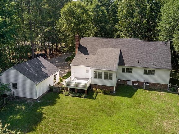 Quality and craftsmanship abound in this lovely cape nestled on 5.4 acres in the heart of Matoaca. Custom built by the current owner and meticulously renovated and maintained over the years, you rarely see this level of quality anymore. You'll love the natural light, great flow, gorgeous hardwood floors, and extensive moldings and millwork throughout the home. The kitchen includes custom cabinetry, granite counters, stainless appliances (all convey) , and island with seating. It was thoughtfully designed with a cook in mind with an abundance of storage, and extra features you only see in very high end kitchens. The first floor master suite is spacious with a walk-in closet with custom built-ins and ensuite bath with more custom cabinetry and jetted tub. The second floor offers three generous bedrooms with new carpet, built-ins and extra storage under the eaves. New roof (2017), gutter guards (2018), new vapor barrier (2019), new carpet and fresh paint (2018). Amazing setting with fruit trees, space for a large garden, trails, plus a detached 2 car garage and storage shed. An outstanding value and truly a must see. Welcome Home!