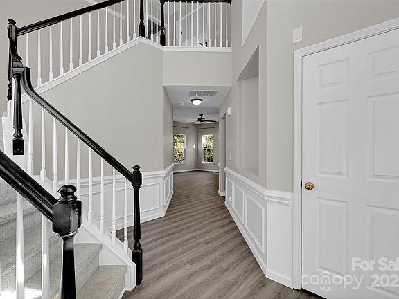 WELCOME HOME to this STUNNING UPDATED CUL-DE-SAC HOME IN VERY DESIRABLE BLAKENEY HEATH!! Ryland Stratford plan has 4 Bedrooms, 2 1/2 Baths, 2500 Square Feet with a 1/4 acre fenced-in yard with custom shed, deck, and patio. COMPLETELY REMODELED NEW KITCHEN with Quartz countertops, tile backsplash, soft close 42" cabinets, center island, farm sink, pro-style spray faucet, countertop pushbutton-activated disposal and HUGE walk-in pantry! NEW LVP PLANK FLOORING and NEUTRAL PAINT throughout the first level. Extensive chair rail and wainscoting in Living Room, Dining Room, and Hallway. Family Room has Gas Fireplace and a ceiling fan with ample room for furniture and a Big Screen TV. Primary Bedroom has Trey ceiling and plenty of room for a King size bed and work area! Many light fixtures upgraded, newer HVAC system, epoxy floor in large 2 car garage with side entry door and storage. Mature landscaping, custom shed with lighting and electric and large deck in backyard. Top rated CMS schools, close to Blakeney Heath and Ballantyne shopping, dining, and highways! Won't last!!