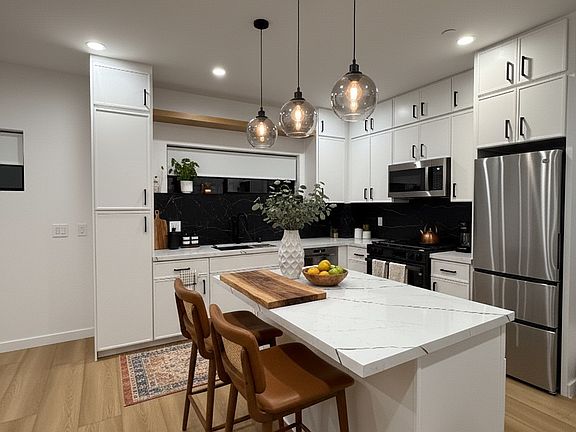 This stunning newly built home features soaring high ceilings and luxury appliances throughout. The designer kitchen includes a massive quartz island, granite farmhouse sink, and top-of-the-line finishes perfect for cooking and entertaining.