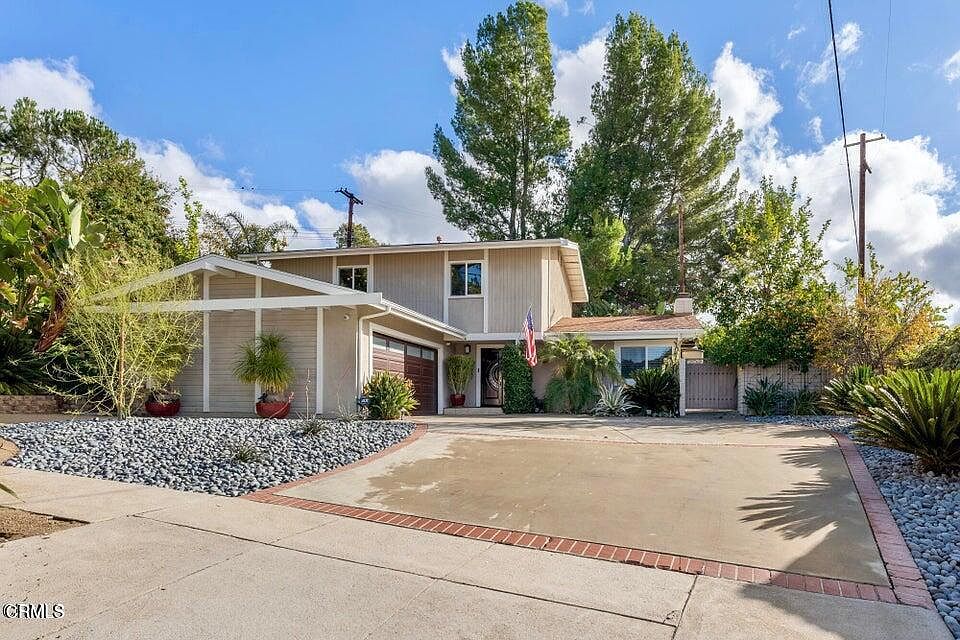 Welcome Home! Located on a long cul-de-sac with beautiful mountain views, enter the double doors to the spacious living room with floor to ceiling fireplace and sliding doors that open to the backyard and pool area. The kitchen is open to the dining room, which also has sliding doors leading to the side yard. There is a bonus room downstairs with a closet that can be used as a 4th bedroom and/or home office. All 3 bedrooms are upstairs. Relax in your heated pool and spa. The backyard/patio has a sitting area and Zen rock garden. The landscaping is drought tolerant and includes drip system and sprinklers. Enjoy the numerous fruit trees which include blood and naval oranges, Meyer and regular lemons, lime, grapefruit, pomegranate, and pomelo. A brand new roof, new pool motor and new drip system have been added in 2024.