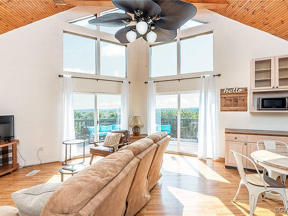 Welcome to 9212 Ridge Road, a charming A-Frame home in Buckingham County, perfect for homeowners and investors. This well-maintained 2-bedroom, 2-bathroom home features an open floor plan that seamlessly blends living, dining, and kitchen areas. The spacious kitchen, with ample counter and cabinet space, a coffee bar, and wood countertops, is flooded with natural light, ideal for cooking and entertaining. Enjoy breathtaking panoramic views of Buckingham's nature from the comfort of your living room. The main floor offers two cozy bedrooms and a full bath, providing ample space for family and guests. The basement / walk-out lower level is as expansive as the main floor, offering a full bathroom, flexibility for 2 additional bedrooms, a home office, or a gym to suit your lifestyle needs. The basement can be accessed through exterior doors. Relax and unwind on the back deck, soaking in stunning views of rolling hills. The property backs to trees, ensuring privacy and a serene atmosphere. The front porch adds to the home's charm, providing a perfect spot for morning coffee or evening relaxation. For investors, 9212 Ridge Road has the potential to become a lucrative rental property. The open floor plan, spacious lower level, and beautiful surroundings make it an attractive option for renters seeking a peaceful retreat. There is so much to love about this country getaway. Don't miss the chance to make this versatile property your own. Schedule your private showing today and discover all that 9212 Ridge Road has to offer!