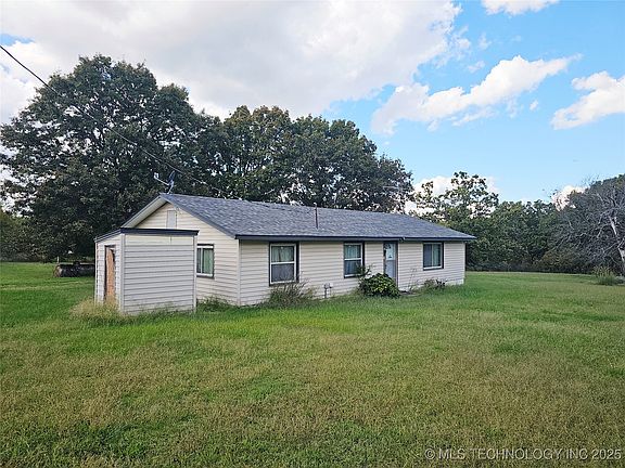 Solid one-owner ranch home on almost 20 acres (+/-) with a shop. Lots of mature trees spread about the land, gorgeous wildlife and a great location that has both peaceful country living and convenience. Offering a blend of serene wooded areas and a park-like setting. Located just 5 miles off of the 412 Turnpike offering convenient access to Tulsa and Arkansas while providing a secluded, peaceful environment. Spacious home has 2 large living areas, 3 bedrooms, 2 full bathrooms. So much potential. The possibilities are endless!