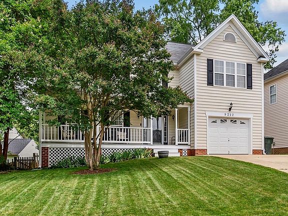 This home is on a cul-de-sac lot with an inviting front porch, a large garage and a fenced back yard, just around the corner from I-540 commutes. The flooring is updated and the ceilings are smooth. The kitchen features a gas range and connects to a large formal dining room. The primary suite is enormous and vaulted. Take long hot baths in the soaking tub filled by an efficient gas tankless water heater! The cherry on top is the nearby greenway trailhead leading into Durant Nature Preserve. Pre-listing inspections have been performed, 1 yr home warranty included! Preferred lender credit of $2,500 also available.