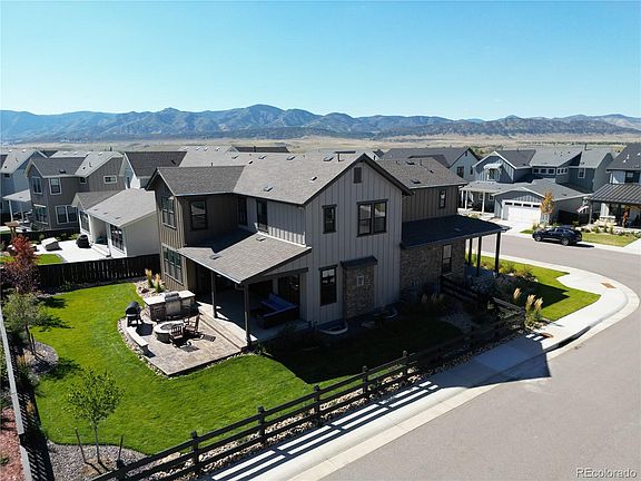 INCREDIBLE DEAL! Live in Solstice within walking distance of Chatfield State Park! This nearly new Meadowview floor-plan offers 5-bed, 5-baths and is the perfect blend of modern luxury and design. Step inside, you'll be greeted by an elegant and open floor plan, with high 10' ceilings and doors. Walk down the wide hall way and notice the 1/2 bath with designer tile. Next to that is the office (could be 6th bed) filled with natural light. Chef's delight, gourmet kitchen featuring top-of-the-line appliances, quartz countertops, spacious island, walk-in pantry and large adjoined dining room makes it ideal for hosting events. The spacious living room has a cozy fireplace and double sliding doors that open up to the covered back porch. Take a peek at the seasonal closet and mud room off of the 4 car garage. Upstairs you'll find a loft, 4 bedrooms, laundry with utility sink. Each bedroom is a retreat in itself, with ample space and well-appointed bathrooms. What truly sets this home apart is the large corner lot with designer landscaping including built-in fire pit and outdoor kitchen. The finished basement also has 10' ceilings, kitchenette, dining/game area and family room (plus additional storage). There is another private bedroom and bath down here. This is a smart house, where you can control the garage door, wifi boosters, keypad entry, lights, Honeywell thermostat (for each level), Alexa, appliances and sound system from your phone. Almost $200k in upgrades overall! You'll be just minutes from trails, boating, fishing, and all the outdoor activities Chatfield has to offer. This home isn't just a house; it's a lifestyle. The community center offers lots of opportunities to get to know your neighbors with things like trivia night, and workout classes. The clubhouse and pool area overlooks the mountain views and private park. This home has so much to offer. Seller is willing to negotiate and is offering $15k to buy-down the rate! Contact listing agent.